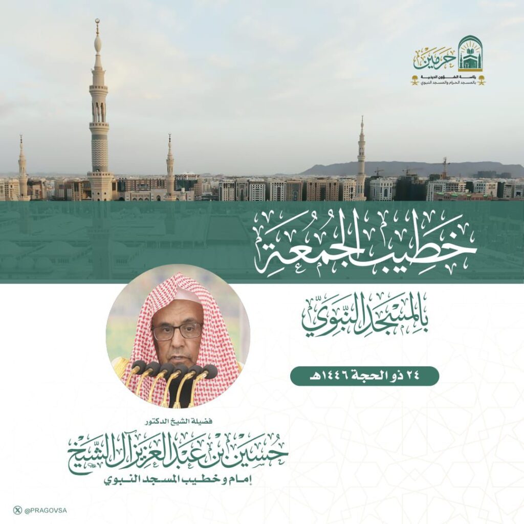 أوضحت رئاسة الشؤون الدينية بالمسجد الحرام والمسجد النبوي عن إماما وخطيبا يوم بعد غد الجمعة الموافق