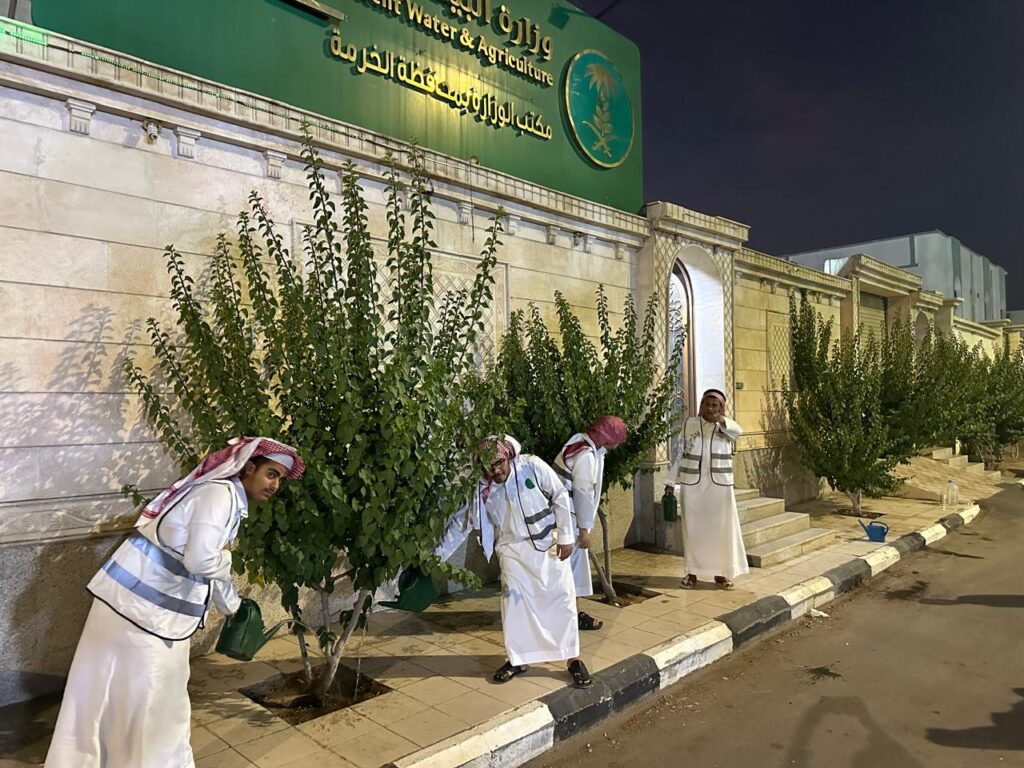 نفذ مكتب وزارة البيئة والمياه والزراعة بمحافظة الخرمة، ممثلاً في المنظمات التطوعية، مبادرة بيئية تهدف إلى سقيا الأشجار داخل مقر المكتب، وذلك ضمن جهوده المتواصلة لتعزيز الغطاء النباتي وتحقيق مستهدفات التنمية البيئية المستدامة.