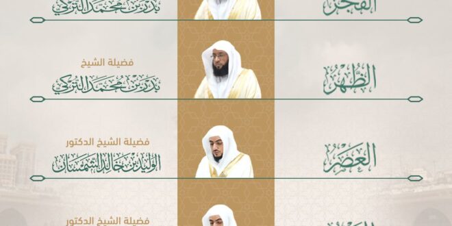 • يؤم المصلين لصلاتا الفجر والظهر: فضيلة الشيخ بدر التركي.