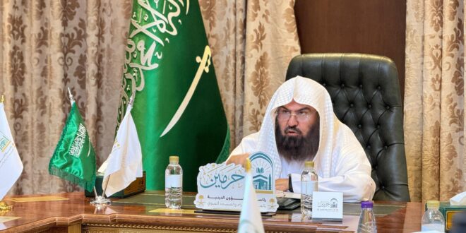 أجتمع معالي رئيس الشؤون الدينية بالمسجد الحرام والمسجد النبوي، الشيخ الأستاذ الدكتور عبدالرحمن بن عبدالعزيز السديس في مكتبه بفرع المدينة المنورة، بفريق العمل الخاص المكلف بالتجهيز (لملتقى إبراز جهود سماحة الشيخ عبدالعزيز بن صالح الصالح-رحمه الله-) إمام وخطيب المسجد النبوي رئيس مجمع المحاكم والدوائر الشرعية بمنطقة المدينة المنورة عضو هيئة كبار العلماء.