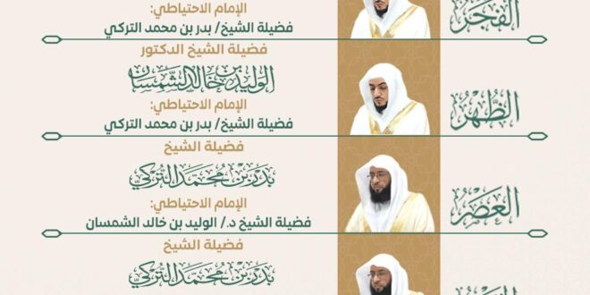 رئاسة الشؤون الدينية توضح جدول الأئمة في الحرمين الشريفين من الأحد 23 صفر إلى السبت 29 صفر 1447هـ