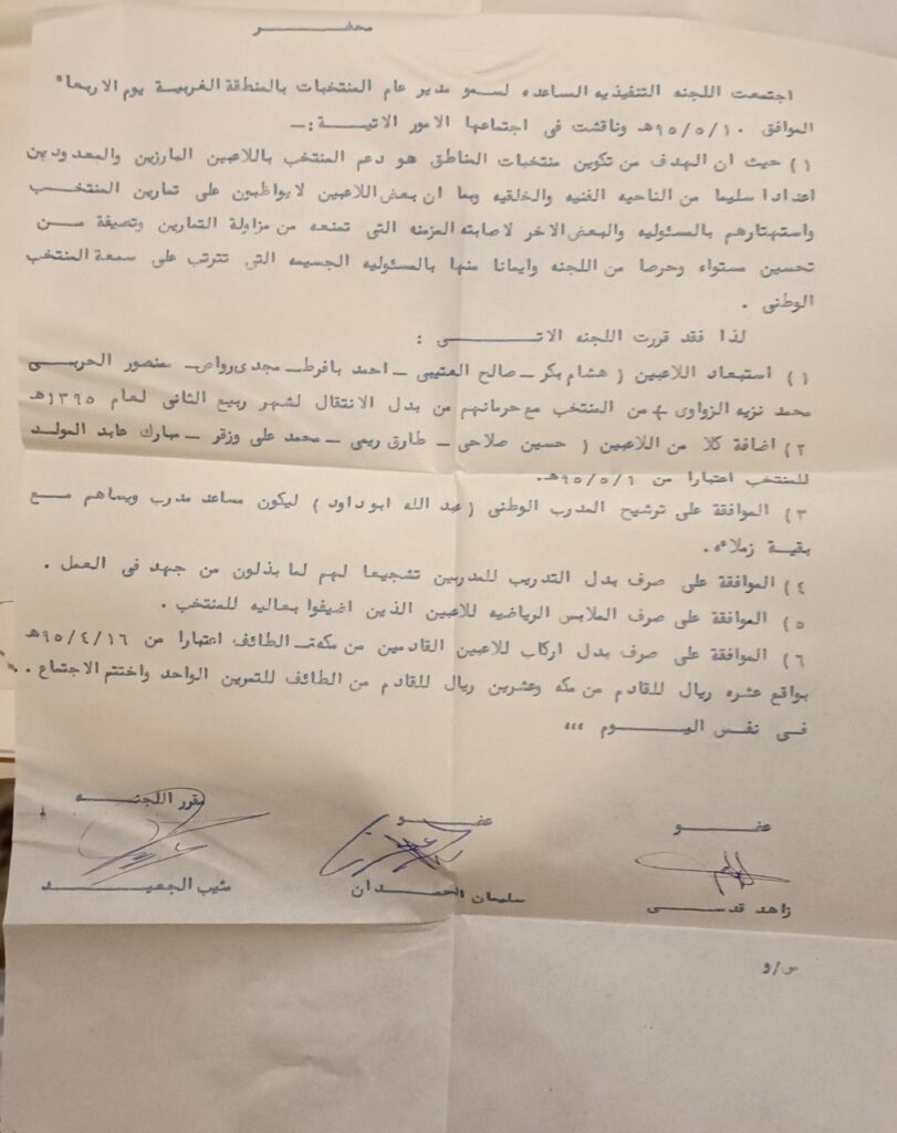 وكان لدينا في النادي مدرب من جمهورية مصر العربية الكابتن رافت عطيه، ومن جمهورية تونس الكابتن رضا السائح-رحمه الله –