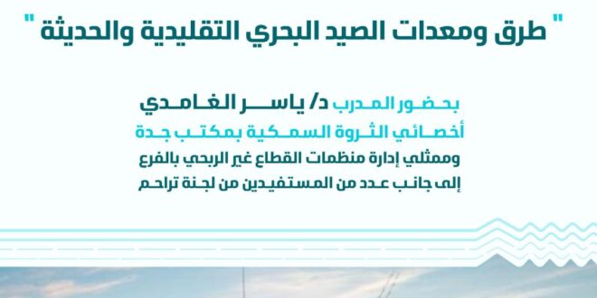 ‏نفّذ فرع وزارة البيئة والمياه والزراعة بمنطقة مكة المكرمة، ممثلاً بإدارة منظمات القطاع غير الربحي وبالتعاون مع مكتب جدة بالفرع ولجنة تراحم، ورشة عمل بعنوان”طرق ومعدات الصيد البحري التقليدية والحديثة”، قدمها أخصائي الثروة السمكية بمكتب جدة الدكتور ياسر الغامدي، بحضور ممثلي إدارة منظمات القطاع غير الربحي، إلى جانب عدد من المستفيدين من لجنة تراحم.