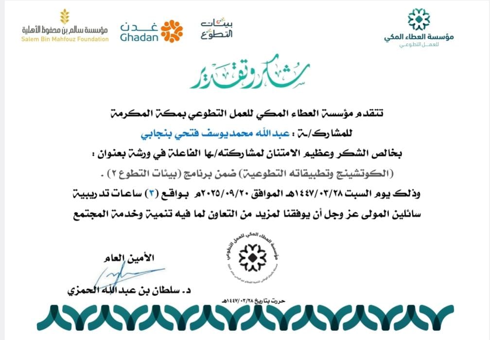 - “الإطار المنطقي للمبادرات التطوعية”: قدمه المدرب هشام الغامدي، وسلط الضوء على الأسس العلمية والمنهجية لتخطيط وتصميم وتقييم المبادرات التطوعية بشكل يضمن تحقيق أهدافها بفعالية وكفاءة.