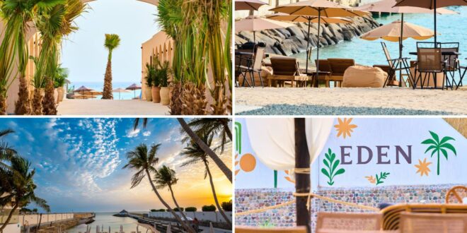 وجاء تصميم شاطئ “ايدن” ليكون وجهة تمتزج فيها خيارات التسوق والسباحة والتشميس على شاطئ البحر أو السباحة في مسبح طولي ممتد بجوار الشاطئ الرملي، بالإضافة إلى تجارب التجديف، والأنشطة البحرية، والاستمتاع بمراقبة مشهد الغروب في وسط أجواء موسيقية رائعة.