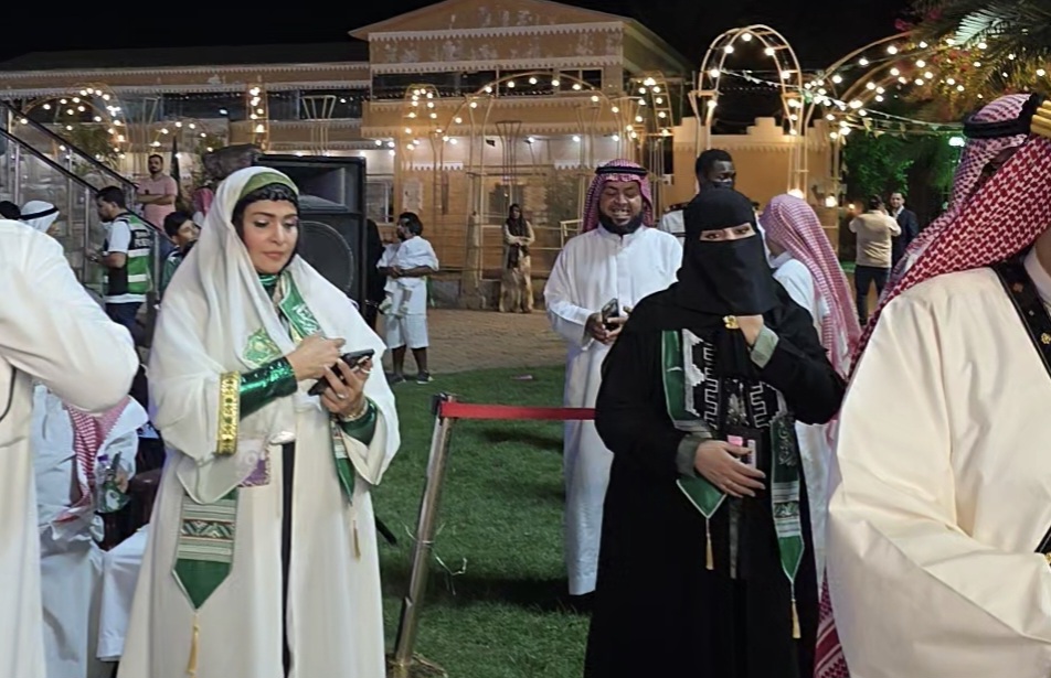 مسيرة بواسطة الخيالة والهجن والدراجات النارية ورفع علم المملكة العربية السعودية كما تخلل
