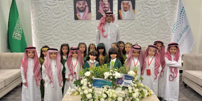 كما أستقبل المدير العام في مكتبه طلبة رياض الأطفال بمناسبة اليوم الوطني السعودي الخامس والتسعين ضمن برامج الاحتفاء المستمرة لمدارس تعليم الطائف، وقدم الطلبة عروضاً من روضة بثينة الأنصارية، والروضة السادسة، ومبادرة براعم عكاظ من روضة أميمة بنت الخطاب، مشيداً بجهود المدارس والروضات في تنمية القيم السعودية والإنسانية لدى الطلبة وتعزيز الولاء والانتماء للقيادة الرشيدة.