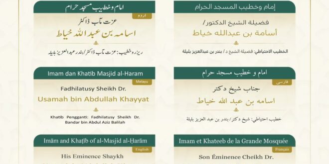 وسيتولى فضيلة الشيخ الدكتور أسامة بن عبدالله خياط .