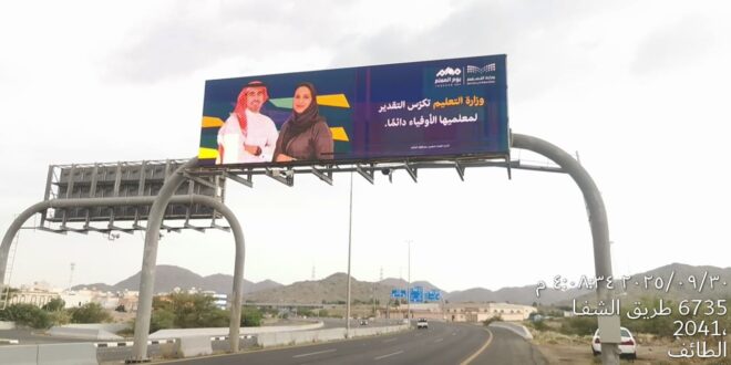 في إطار الإحتفال باليوم العالمي للمعلم، بادرت الإدارة العامة للتعليم بمحافظة الطائف، بالتعاون مع أمانة الطائف، بإرسال رسائل تهنئة وتقدير للمعلمين والمعلمات ، تحت شعار “إعادة صياغة التدريس كمهنة تعاونية”.