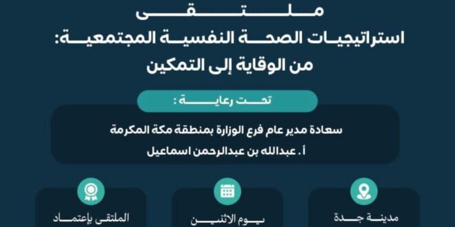 فرع وزارة الموارد البشرية والتنمية الاجتماعية بجدة ينظم ملتقى إستراتيجيات الصحة النفسية المجتمعية:من الوقاية إلى التمكين