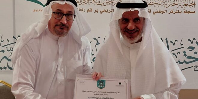 الجمعية الخيرية لتحفيظ القرآن الكريم بجنوب مكة وقراها تكرم المستشار الإعلامي الأستاذ منصور نظام الدين