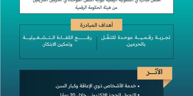 وتهدف المبادرة إلى تقديم تجربة رقمية موحدة للتنقّل داخل الحرمين الشريفين وخدمة ذوي الاعاقة و كبار السن ، وتحقيق رفع الكفاءة التشغيلية وتمكين الابتكار ضمن منظومة الخدمات المقدمة