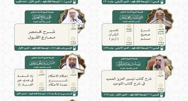 أصدرت رئاسة الشؤون الدينية بالمسجد الحرام والمسجد النبوي جدول البرنامج العلمي الدائم بالمسجد الحرام لشهر جمادى الآخرة 1447هـ.