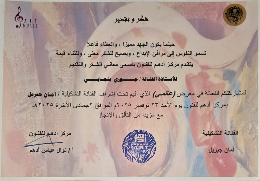 أقيم حفل الختام في أجواء احتفالية رائعة، وشهد تكريم جميع الفنانين الذين أثروا هذا الملتقى الإبداعي بمشاركاتهم. وفي هذا السياق، كان لجهود الأستاذة أمان جبريل، التي أشرفت على تنسيق وإدارة المعرض بتميز، صدى خاص؛ حيث أثنت اللجنة المنظمة على كفاءتها العالية في تنظيم الملتقى ونجاحها في تجميع هذا الطيف الواسع من الإبداعات. هذا النجاح التنظيمي أكد مجدداً على الدور الرائد والمحوري الذي يلعبه مركز أدهم في دفع عجلة الحراك الفني بمدينة جدة، وهو ما سبق وأشاد به ضيف شرف الافتتاح، الأستاذ مفلح القحطاني.