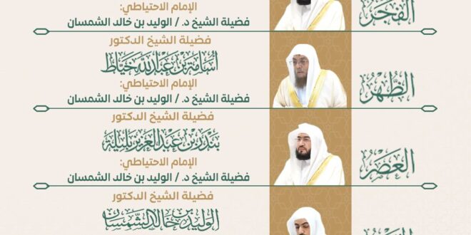وجاء جدول الأئمة على النحو الآتي: