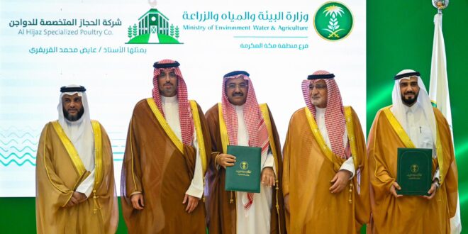 ‏من جانبه، أوضح مدير عام فرع الوزارة بمنطقة مكة المكرمة المهندس وليد بن إبراهيم آل دغيس:أن هذه المشاريع تمثل امتداداً لخطط الوزارة الرامية إلى تطوير المدن الزراعية، ورفع الطاقة الإنتاجية للمشاريع الحيوانية وتوسيع نطاق الاستثمار في القطاعات المرتبطة بالأمن الغذائي، مؤكداً أن هذه الخطوات تعزز مسار الاستدامة وتسهم في تحقيق الاكتفاء وتنمية الاقتصاد الريفي بما ينسجم مع تطلعات رؤية المملكة 2030.
