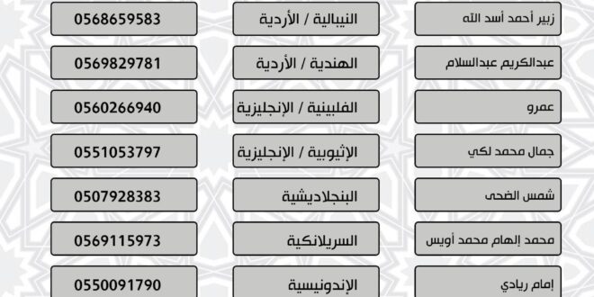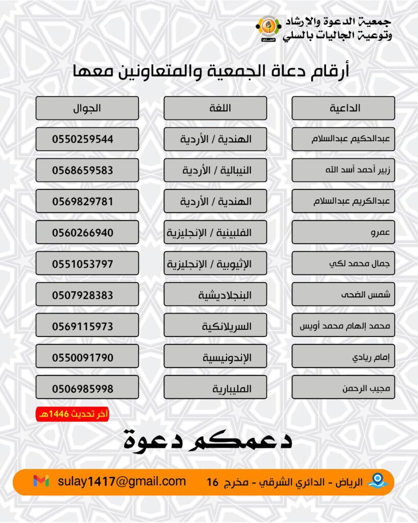 • للغات الهندية/الأردية: تواصل مع الدعاة على الأرقام التالية: 0550259544 أو 0569829781.