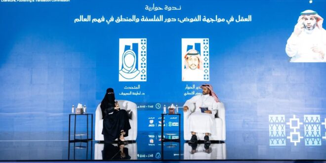 قدّم معرض جدة للكتاب 2025 ندوة حوارية بعنوان “العقل في مواجهة الفوضى: دور الفلسفة والمنطق في فهم العالم”، أدارها جعفر الأنصاري، وتحدثت خلالها الدكتورة لطيفة المعيوف، وسط حضور من زوار ومثقفين وأكاديميين.