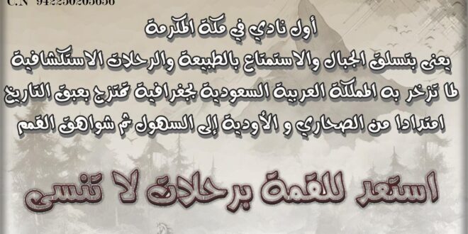 “نادي قمم” يطلق أولى رحلاته الاستكشافية في مكة المكرمة: مغامرات تعانق السحاب وتستكشف كنوز الطبيعة