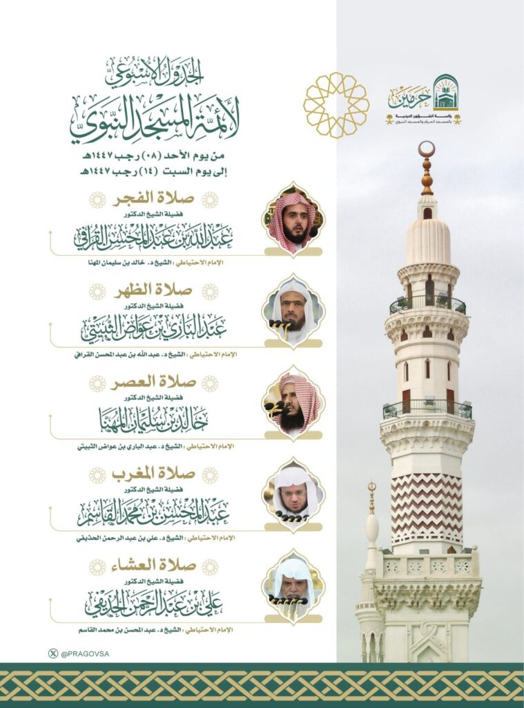 ثانيًا: جدول أئمة المسجد النبوي: