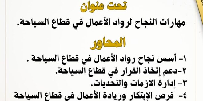 - الموضوع: مهارات النجاح لرواد الأعمال في قطاع السياحة.