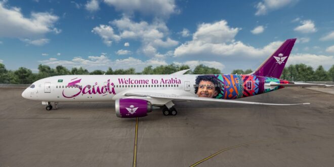 كشفت الخطوط السعودية عن طائرتها المتوشحة بشعار روح السعودية “welcome to Arabia”، وذلك بالتعاون مع الهيئة السعودية للسياحة، التي حولت الطائرة إلى منصة ترويجية للوجهات السياحية السعودية، حيث تم توظيف الطائرة كوسيط إبداعي يرحب بالزوار ويعكس الحفاوة السعودية الأصيلة.