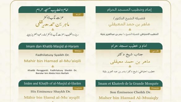 وسيتولى فضيلة الشيخ الدكتور ⁧‫ماهر المعيقلي إمامة المصلين وإلقاء خطبة الجمعة في المسجد الحرام.