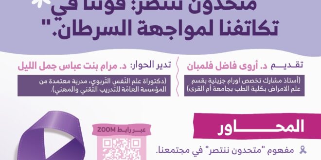 “متحدون ننتصر: قوتنا في تكاتفنا لمواجهة السرطان.”