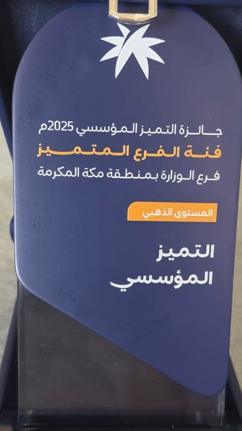 ويعكس هذا الإنجاز جهود العمل المؤسسي المتكامل، وحرص فرع الوزارة بمنطقة مكة المكرمة على تطوير الخدمات، وتحسين تجربة المستفيدين، وتعزيز ثقافة التميز والجودة في بيئة العمل.