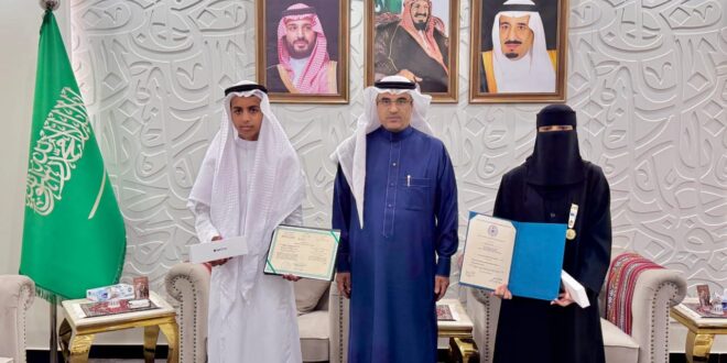 كرَّمَ المدير العام للتعليم بمحافظة الطائف، الدكتور سعيد بن عبدالله الغامدي ، الطالبة لانا ماجد المالكي من مدارس الجيل حصولها على الجائزة الدولية الخاصة في معرض إبداع للعلوم والهندسة ٢٠٢٦م، والطالب عبدالله حسن السالمي من الريان المتوسطة المسرّع من الصف الأول المتوسط إلى الصف الثالث المتوسط.