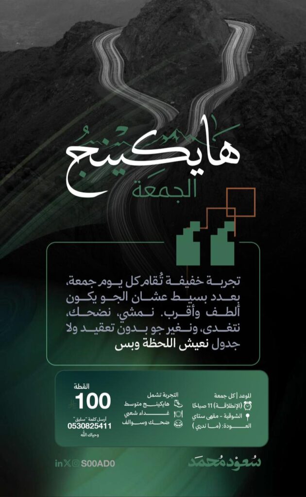 أجواء الطائف بطبيعتها، وطقسها، وتنوع مساراتها، تجعل من هذا الروتين تجربة متجددة لا تُمل. كل جمعة تحمل طابعًا مختلفًا، ومسارًا جديدًا، وحديثًا إنسانيًا أعمق، وكأنها استراحة ذكية من صخب الأسبوع.