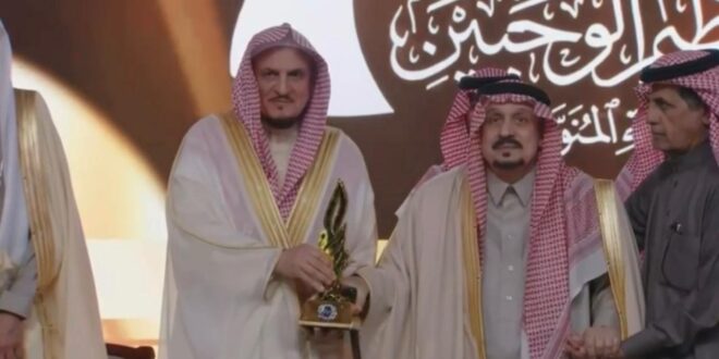 تحت رعاية خادم الحرمين الشريفين الملك سلمان بن عبدالعزيز آل سعود – حفظه الله – ونيابةً عنه، كرّم صاحب السمو الملكي الأمير فيصل بن بندر بن عبدالعزيز أمير منطقة الرياض، وقف تعظيم الوحيين بمناسبة فوزه بـ جائزة الأميرة صيتة بنت عبدالعزيز للتميز في العمل الاجتماعي في دورتها الثالثة عشرة، وذلك خلال الحفل الذي أُقيم بمدينة الرياض لتكريم رواد العمل الاجتماعي الفائزين بالجائزة لعام 2025م.