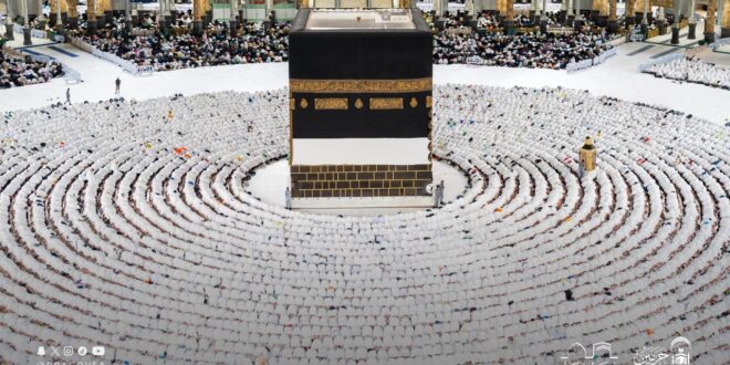 وظهرت كثافة بشرية عالية في صحن المطاف وأروقة المسجد الحرام وساحاته الخارجية، مع انسيابية ملحوظة في حركة الحشود رغم الأعداد الكبيرة.