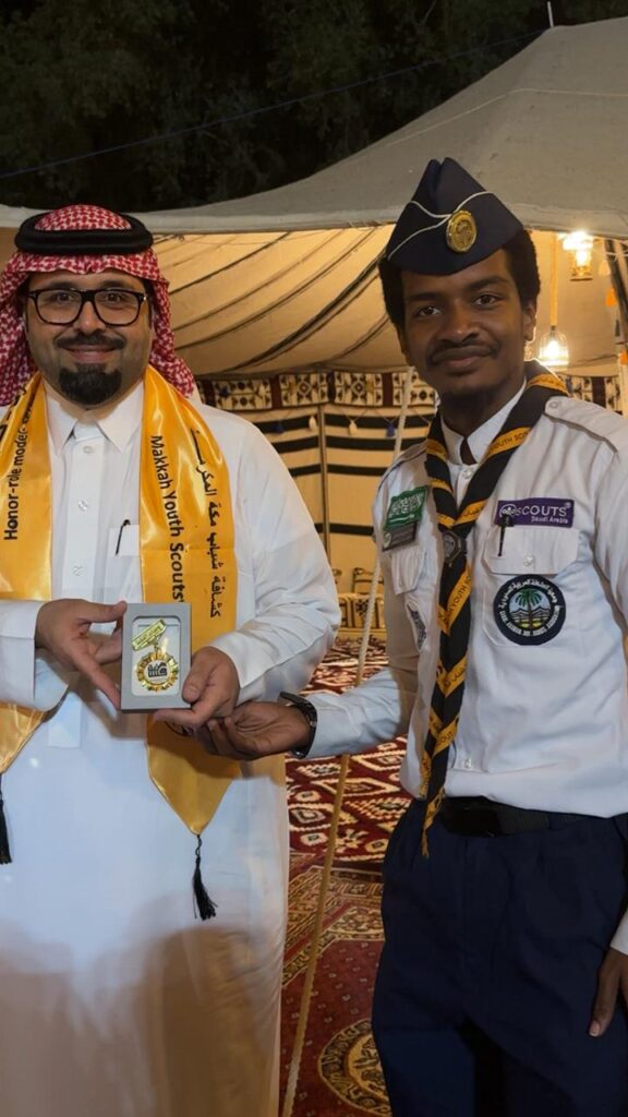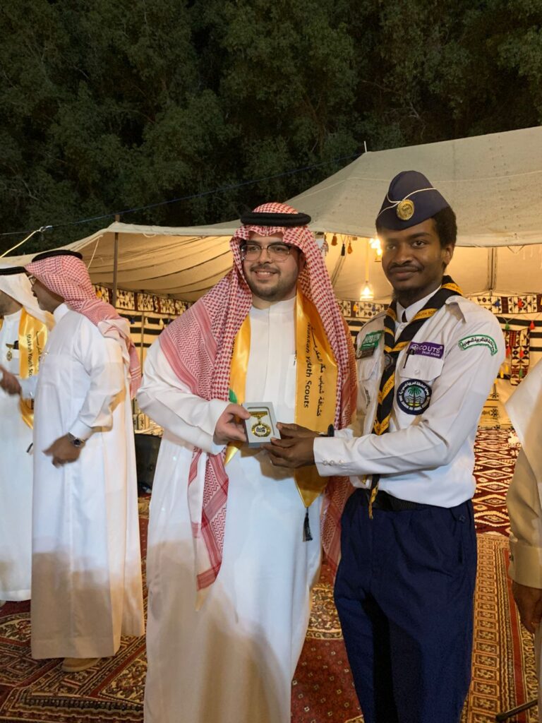 وسلم القائد الكشفي، علي بكر هوساوي، عضو القيادة العامة بكشافة شباب مكة المكرمة، بتسليم الدروع الشرفية، في الاحتفال الذي نظمته مجموعة لمسة وفاء، ومجموعة الاحدية.