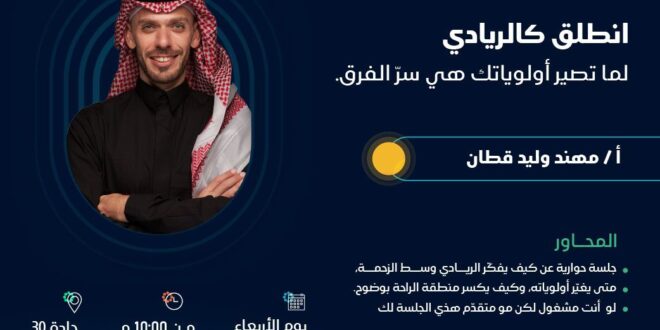 ​في جلسة حوارية ملهمة بعنوان “انطلق كالريادي”، سنغوص مع الأستاذ مهند وليد قطان في عقلية رائد الأعمال الناجح. هذه الجلسة ليست مجرد نصائح نظرية، بل هي خارطة طريق لـ: