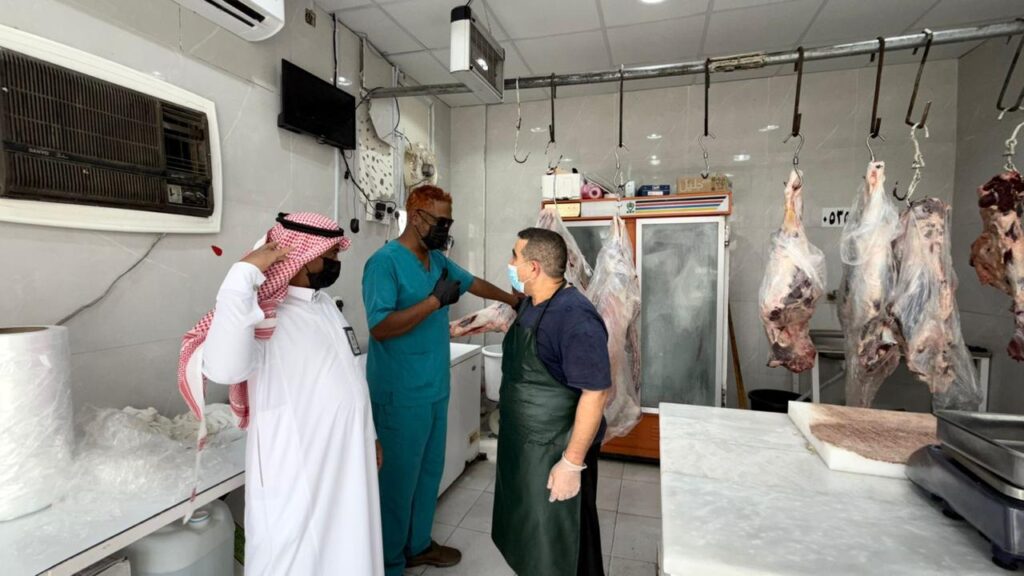 كما واصل مكتب الوزارة بمحافظة العرضيات تنفيذ جولاته الرقابية الميدانية على الأسواق والمسالخ، للتأكد من الالتزام بالاشتراطات الصحية والبيئية، وضمان سلامة المنتجات المعروضة خلال فترة العيد، وتركزت الجولات على التحقق من سلامة اللحوم، والتأكد من تطبيق الإجراءات البيطرية في المسالخ قبل وبعد الذبح، إضافة إلى متابعة النظافة العامة وطرق الحفظ والتخزين، ورصد أي مخالفات صحية أو بيئية واتخاذ الإجراءات النظامية اللازمة حيالها.