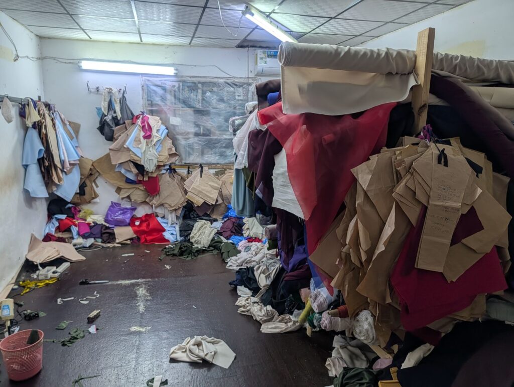 وأضاف أن الفرق الميدانية رصدت في الموقع الثاني استغلال فيلا قديمة أخرى كمعمل خياطة وتطريز، حيث ضُبطت (10) مكائن خياطة صغيرة و(3) مكائن تطريز كبيرة، إلى جانب كميات من رولات الأقمشة والفساتين الجاهزة، كما تبيّن استغلال الدور الثاني من المبنى لسكن عمالة مخالفة تعمل لحسابها الخاص.