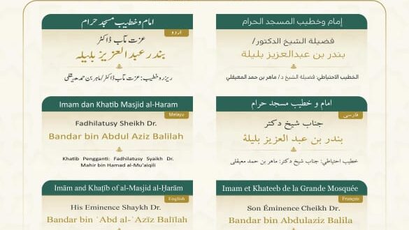 وسيتولى فضيلة الشيخ الدكتور ⁧‫بندر بليلة‬⁩ بإمامة المصلين وإلقاء خطبة الجمعة في المسجد الحرام.