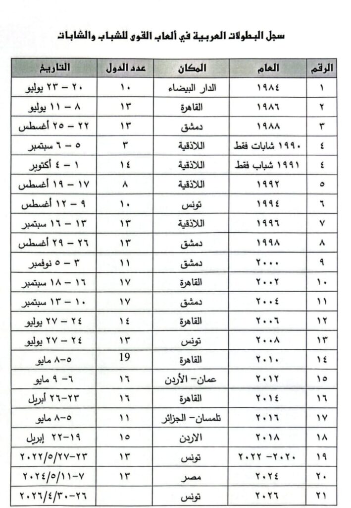 إعتماد شعار “عربية القوى” الـ21.. والإمارات تُؤكد مشاركة قوية في تونس
