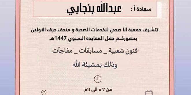 - ملاحظة: الدعوة عامة لكافة أفراد المجتمع لمشاركة هذه الاحتفالية السنوية.