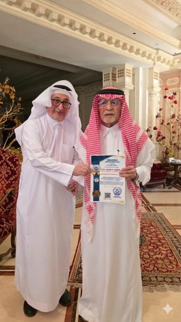 في ختام اللقاء، قدّم معاليه شهادة الشكر والتقدير من البورد الأمريكي للدكتور منصور، وسط أجواء من البهجة والاعتزاز. وعبر الحضور عن شكرهم العميق لمعاليه على: