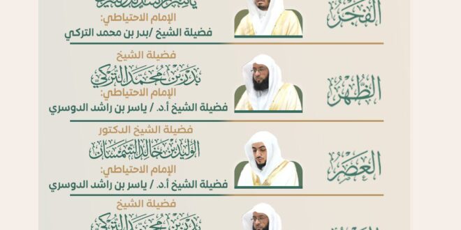 ويأتي اعتماد هذا الجدول في إطار تنظيم شؤون الإمامة في المسجد الحرام والمسجد النبوي، بما يُمكّن المصلين من أداء عباداتهم في أجواء روحانية مفعمة بالسكينة، وبقيادة أئمة من أهل العلم والخبرة.