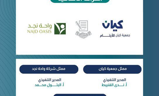 في خطوة نوعية تعكس توجهات التكامل المؤسسي وتعزيز الشراكات المجتمعية، وقّعت جمعية كيان للأيتام ذوي الظروف الخاصة اتفاقية تعاون مع مؤسسة واحة نجد لتنظيم المعارض والمؤتمرات، بهدف الارتقاء بمستوى تنظيم فعاليات الجمعية وتقديم خدمات احترافية تدعم برامجها ومشاريعها التنموية.