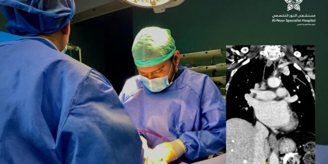 ‎تمكّن فريق طبي متخصص مكون من اقسام (جراحة الصدر  والتخدير والتمريض والعمليات)  في مستشفى النور التخصصي – عضو تجمع مكة المكرمة الصحي – من إجراء عملية جراحية دقيقة لاستئصال انتشار ورمي في الرئة اليسرى باستخدام تقنية المنظار الجراحي أحادي الفتحة، وذلك ضمن مسار الرعاية الجراحية التخصصية أحد مسارات نموذج الرعاية الصحية السعودي.