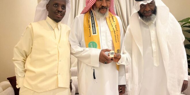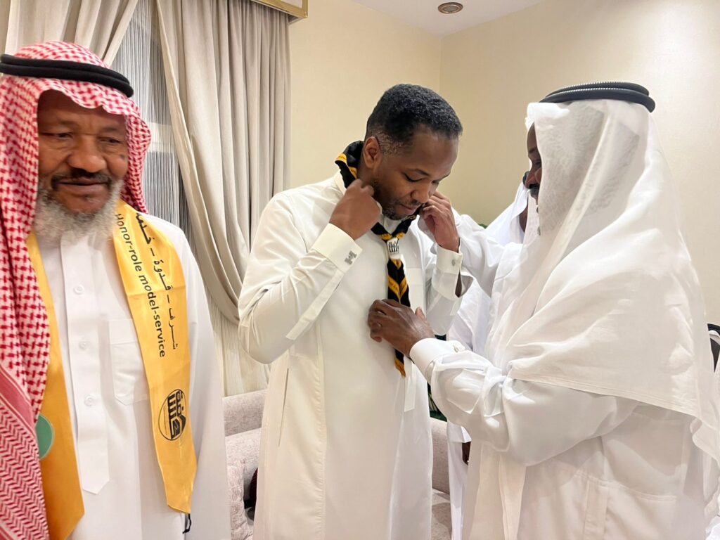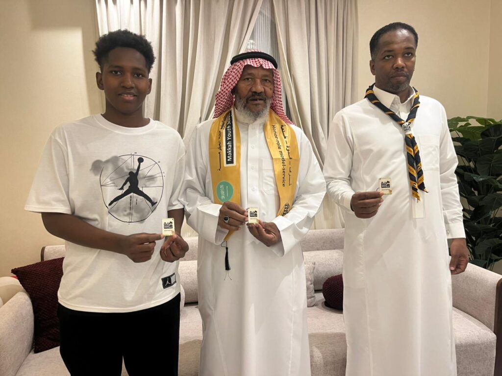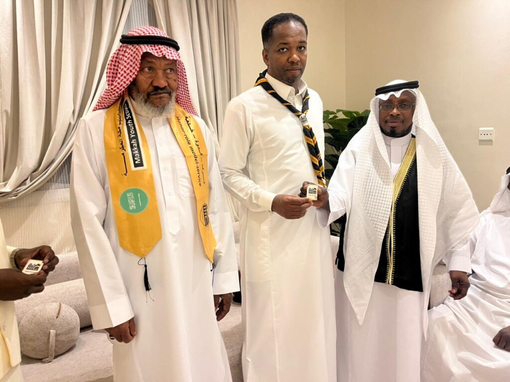 وفي نهاية الزيارة قام القائد الكشفي علي بكر هوساوي والقائد الكشفي الزميل عادل عبدالله قاضي بتقليد الكابتن عبدالله سليمان اميدو وشاح فريق كشافة شباب مكة المكرمة وتسلم الميدالية التذكارية من القائد الكشفي طاهر البرناوي