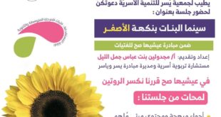 أكمل القراءة »جمعية يسر للتنمية الأسرية بمكة المكرمة تقيم مساء يوم غد الخميس برنامج بعنوان:( سينما البنات بنكهة الأصفر)