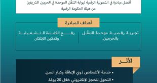 د. منصور نظام الدين –عبدالله بنجابي : مكة المكرمة:- حصدت الهيئة العامة للعناية بشؤون المسجد الحرام والمسجد النبوي جائزة أفضل مبادرة رقمية عن مشروع بوابة التنقّل الموحدة في الحرمين الشريفين، وذلك من هيئة الحكومة الرقمية، تقديرًا لجهودها في تعزيز التحول الرقمي وتحسين تجربة الزوار والمعتمرين.وتهدف المبادرة إلى تقديم تجربة رقمية موحدة للتنقّل داخل الحرمين الشريفين وخدمة ذوي الاعاقة و كبار …