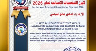 منصور نظام الدين:العراق:- ثمن البورد الأمريكي جهود رئيس الاتحاد العربي للإعلام الإلكتروني الدكتور صالح المياحي في تعزيز التعايش السلميفي لفتة تقديرية تعكس أهمية العمل الإنساني والإعلامي المشتركوقدم البورد الأمريكي للتدريب والتطوير الدولي، بالتعاون مع مؤسسة الأمن الوطني الإنسانية للتنمية البشرية، خطاب شكر وتقدير للدكتور صالح المياحي رئيس الاتحاد العربي للإعلام الإلكترونيجاء هذا التكريم تقديراً للدور المحوري الذي يلعبه الدكتور المياحي …