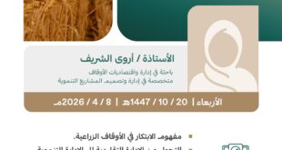 منصور نظام الدين –عبدالله بنجابي :القنفذة:-نفّذ مكتب وزارة البيئة والمياه والزراعة بمحافظة القنفذة ورشة عمل بعنوان “دور الجمعيات الزراعية في دعم القطاع الزراعي”، وذلك بمشاركة عدد من المختصين والمهتمين بالقطاع الزراعي وممثلي الجمعيات التعاونية الزراعية بالمحافظة.وهدفت الورشة إلى تعزيز دور الجمعيات الزراعية في تنمية القطاع الزراعي، ورفع كفاءة الإنتاج، وتبادل الخبرات بين المزارعين، إضافة إلى مناقشة أبرز التحديات التي تواجه …
