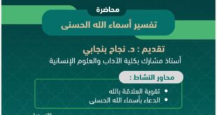أكمل القراءة »دعوة لحضور محاضرة: “تفسير أسماء الله الحسنى”